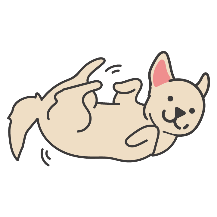 강아지의 앞다리를 잡고 굴리면서 “굴러!”를 명령한다.